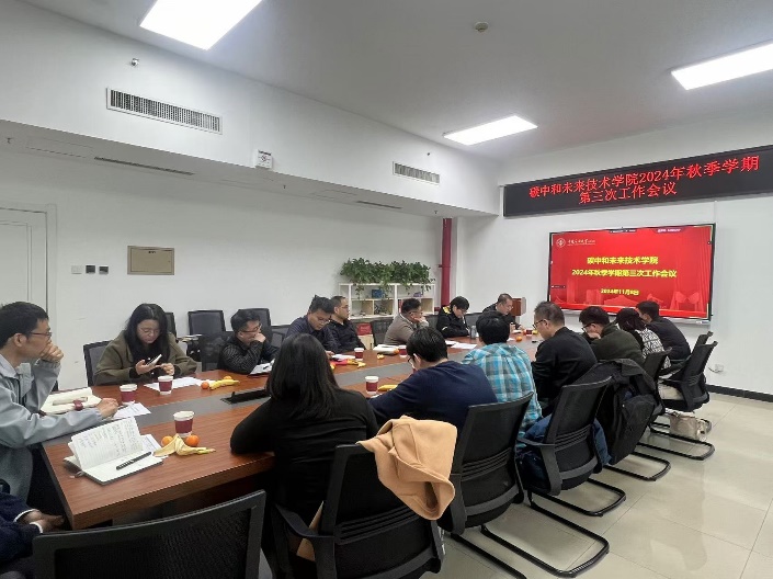 碳中和未来技术学院于11月8日在中油大厦824会议室召开了2024年班主任、学业导师交流研讨及工作部署会。会议由碳中和未来技术学院执行院长蓝兴英主持,副院长芮振华、书院学生工作负责人张嵩及学院各班主任、学业导师参加会议。