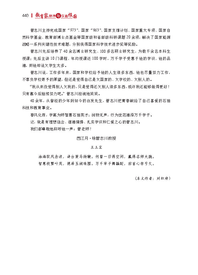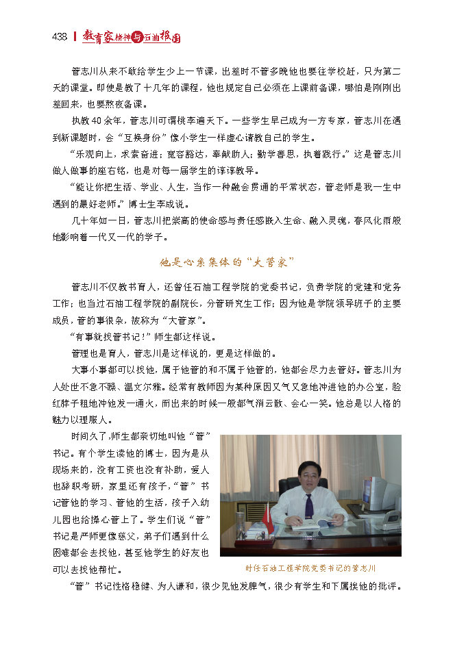“责任心、敬业精神和奉献精神是干好这份职业、成为一名优秀教师的基本条件。教学不仅仅是传授知识,释疑解惑,更重要的是育人,所以做好这项工作并不容易,但只要真心投入也不难。”
