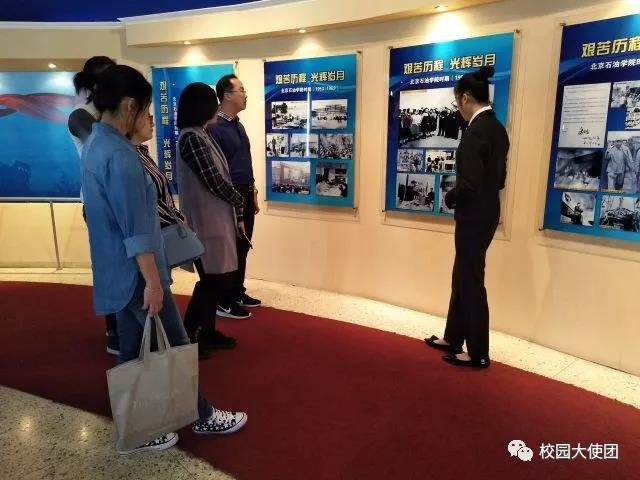 讲解员认真地进行校史和校情的讲解,带领学长学姐参观了校史馆二楼陈列的校庆60周年时社会各界人士捐赠给我校的纪念品。恰逢今年是石大建校65周年,这令校友有了更深的感触。