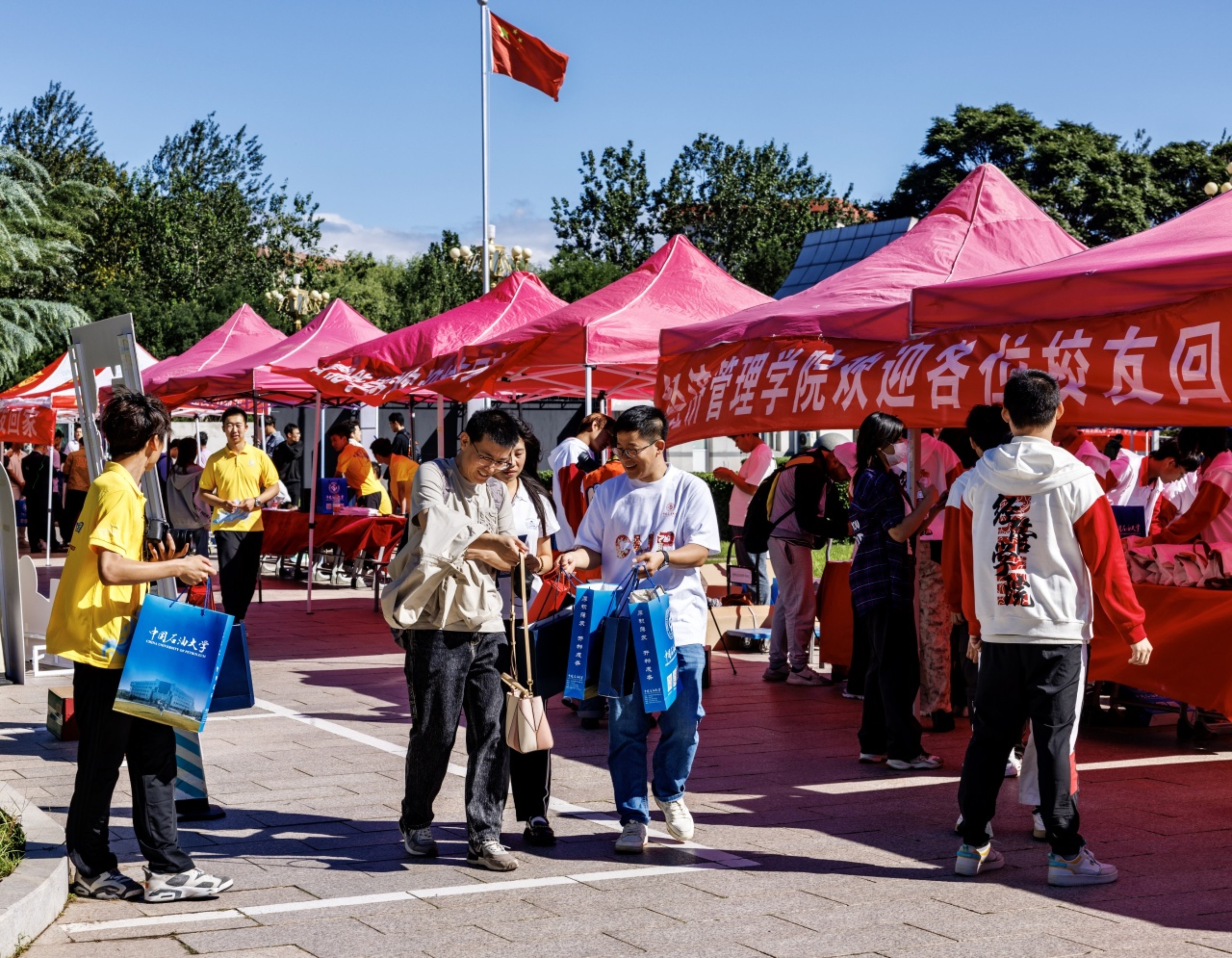 地质工程1994届校友门相勇、石油工程1994届校友王京博、机械工程1994届校友王大伟、地质工程2004届校友江青春、化学工程2004届校友公磊、机械工程2004届校友郭涛、电子信息2004届校友张玮、国际贸易2004届校友李世群、英语2004届校友石娟,分别代表毕业30周年、20周年的校友上台发言。他们回顾了在母校求学生活的时光,感恩母校和老师对自己的关爱和培养,为母校近年来取得的办学成就感到自豪。他们表示,将会始终传承发扬母校“实事求是、艰苦奋斗”的优良传统,在各自岗位为强国建设和民族复兴贡献力量,并祝愿母校宏图更展、再谱华章,早日建成能源领域特色鲜明的世界一流研究型大学。