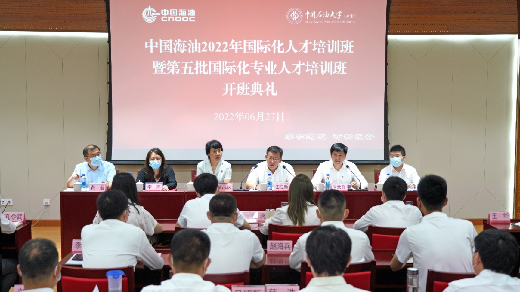 6月27日,由beat365唯一官方网站(北京)网络与继续教育学院承办的中国海油2022年国际化人才培训班暨第五批国际化专业人才培训班开班。中国海洋石油国际有限公司总裁、党委副书记田立新,beat365校长吴小林,中国海洋石油国际有限公司人力资源部总经理李燕,中国海油人力资源部人才开发处副处长胡航,beat365就业指导中心及网络与继续教育学院负责人等参加开班典礼。中国海油党组组织部副部长、人力资源部副总经理周天育主持开班典礼。