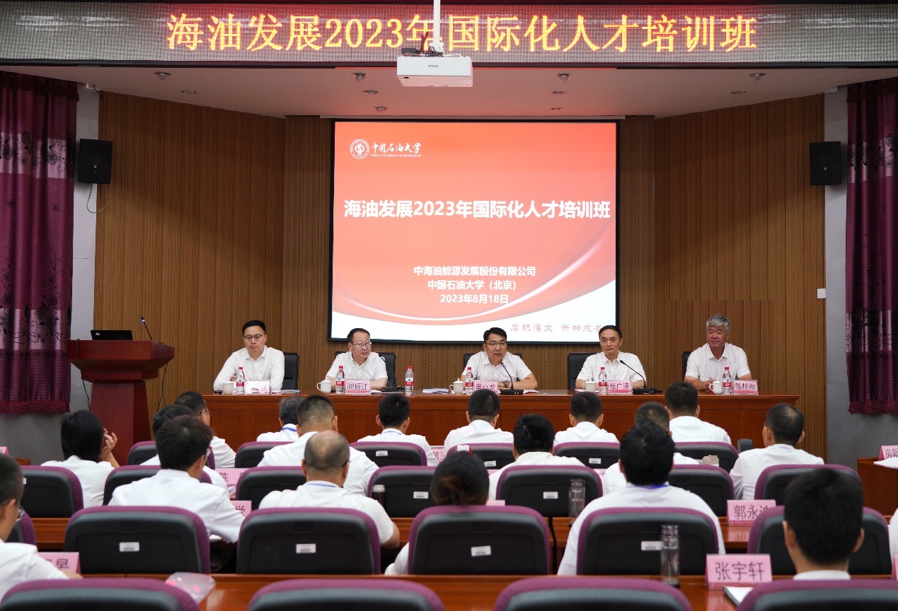 2023年8月18日,我院承办海油发展2023年国际化人才培训班顺利开班。中海油能源发展股份有限公司副总经理黄小龙、beat365唯一官方网站(北京)副校长张广清出席开班典礼并讲话。