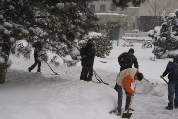 我院学生积极行动扫雪除冰