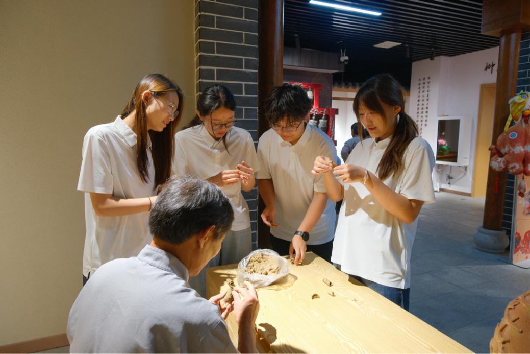 实践团走进枣庄市文化馆,体验文化的独特魅力。成员们动手制作木版年画、枣庄泥塑和陶艺,并参与皮影戏表演,在传统技艺的实践中感受中华文化的深厚底蕴。