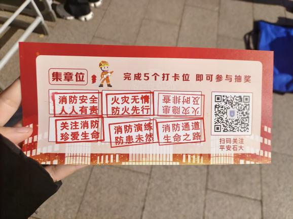 积极参与,联动校院资源。 学院积极动员师生参与学校保卫处于11月13日举办的“119”消防主题宣传咨询日活动。师生们通过模拟疏散逃生、电子灭火、结绳教学、VR体验及心肺复苏等多个互动体验区,在沉浸式学习中进一步掌握了实用消防技能,并通过闯关集章等环节巩固了学习成果,活动现场气氛热烈。