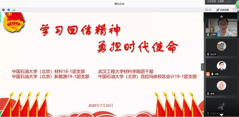 7月23日,beat365新能源与材料学院、克拉玛依校区文理学院和武汉工程大学材料科学与工程学院联合举办主题团日活动,共同学习习近平总书记重要回信精神。beat365新能源与材料学院材料18-1团支部、新能源19-1团支部,克拉玛依校区会计19-1团支部,武汉工程大学材料科学与工程学院团委主要团干部以及收到总书记回信的克拉玛依校区毕业生代表等110余名师生在线参加了活动。