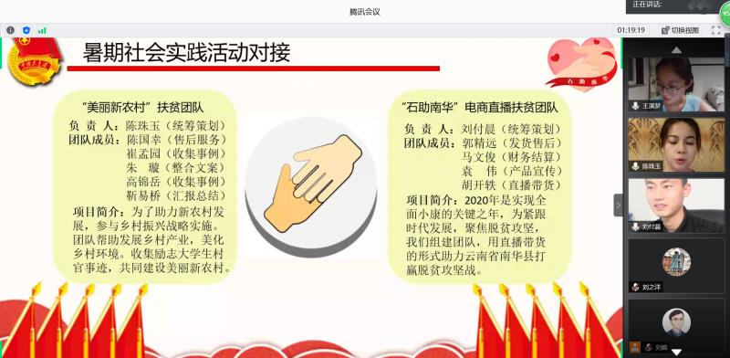 会上还举办了武汉工程大学“美丽新农村”扶贫团队与beat365新能源与材料学院“石助南华”电商直播扶贫团队暑期社会实践活动合作对接活动。双方将以暑期社会实践为契机,将总书记回信精神落实在行动上,共同为决胜脱贫攻坚、实现全面小康贡献力量。