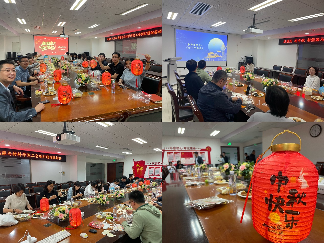 “暑退九霄净,秋澄万景清”。中秋不仅是赏月良辰,也是难得的团圆时刻。今年恰逢中秋、国庆“双节”同庆,为大力弘扬中华优秀传统文化,营造浓厚节日氛围,共庆学校七十华诞,9月28日,新能源与材料学院工会开展了“庆国庆 迎中秋”制灯猜谜茶话会活动。