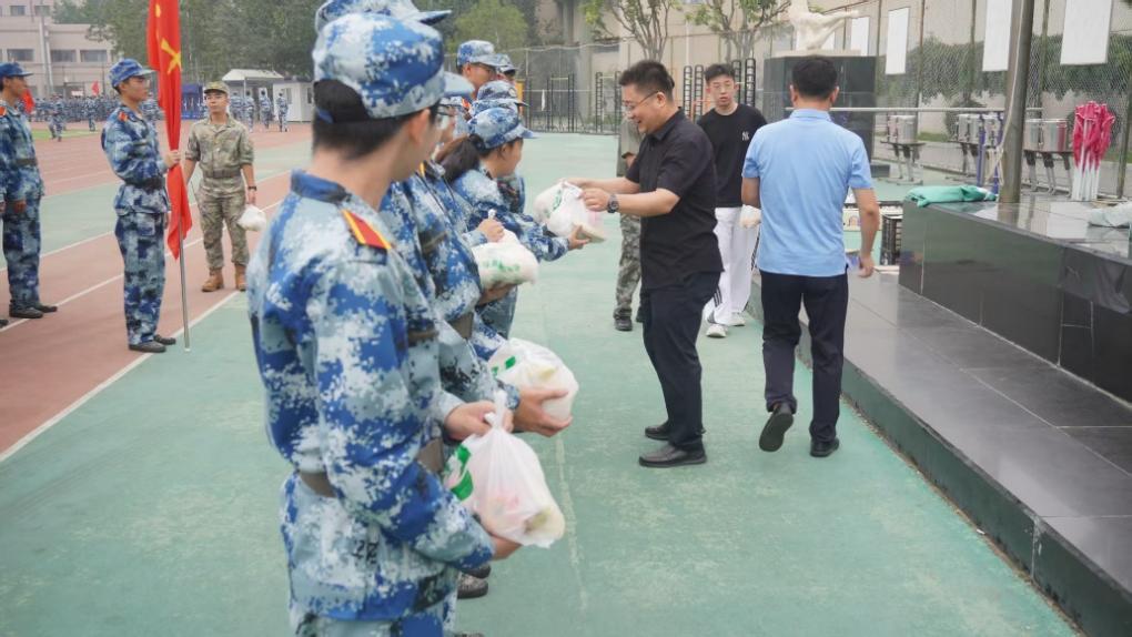 为鼓励新生在军训中心怀坚定意志、自我磨砺,厚植家国情怀,9月12日,新能源与材料学院党委书记叶海木、院长李永峰、党委副书记韩瑾以及2025级本科生辅导员阎亭琳、张虔嘉,前往新生军训训练场,慰问承训教官及2025级本科新生。