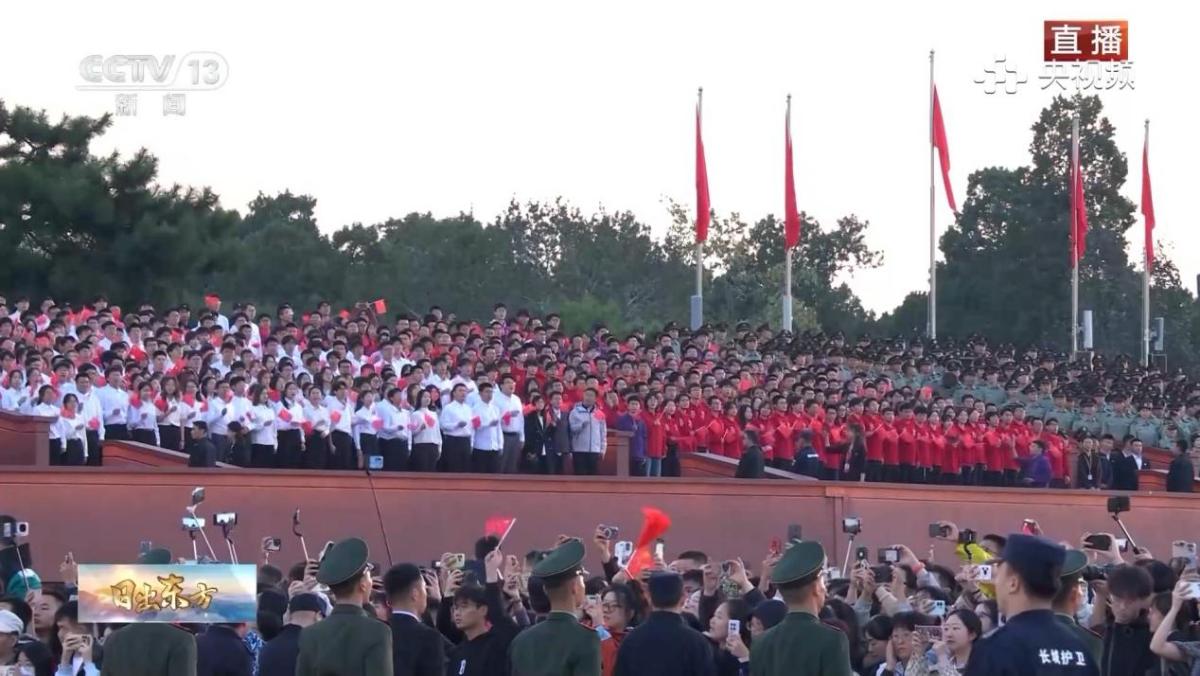 凌晨5时,师生代表在天安门东侧观礼台有序集结、整齐站定,怀着对祖国的崇高敬意等待仪式开始。6时11分,升旗仪式正式开始,全体师生肃立注目,高唱《义勇军进行曲》,见证国旗冉冉升起。升旗仪式结束后,现场师生共同唱响《歌唱祖国》,悠扬歌声中满含对祖国的深情祝福。