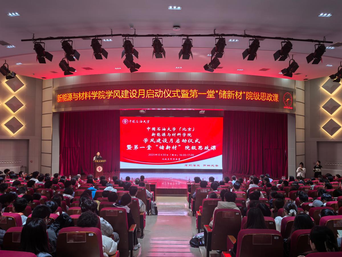 2025年10月30日下午,新能源与材料学院在北校园科学会堂举行“新能源与材料学院学风建设月启动仪式暨‘储新材’院级思政课”。学院党政领导、各系负责人、教师代表及全体新生共同参加了本次活动。正式拉开本学年学风建设月序幕,深入推进“学在beat365”行动计划。