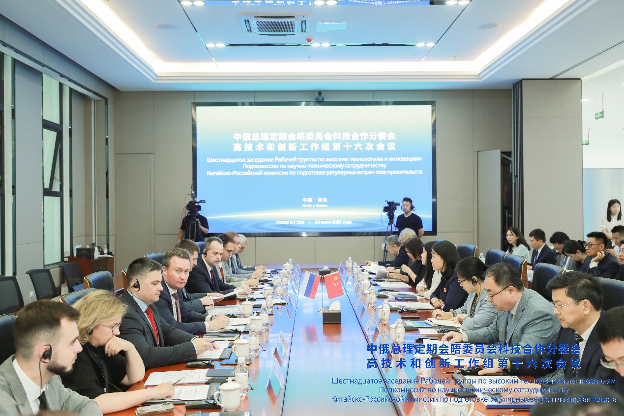 2025年6月23日,中俄总理定期会晤委员会科技合作分委会高技术和创新工作组第十六次会议在青岛召开。中国科技部国际合作司副司长王晓与俄罗斯科学和高等教育部国际合作司副司长苏希克共同主持会议。