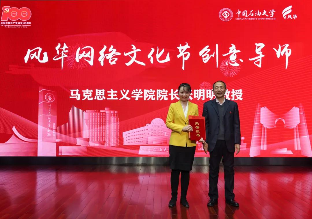 为鼓励师生积极组织、参与网络文化创作实践,投身校园网络文化建设,学校选拔培育一批风华网络文化工作室,陈峰为首批风华网络文化工作室地球科学学院热点工作室、机械与储运工程学院启蛰工作室授牌。