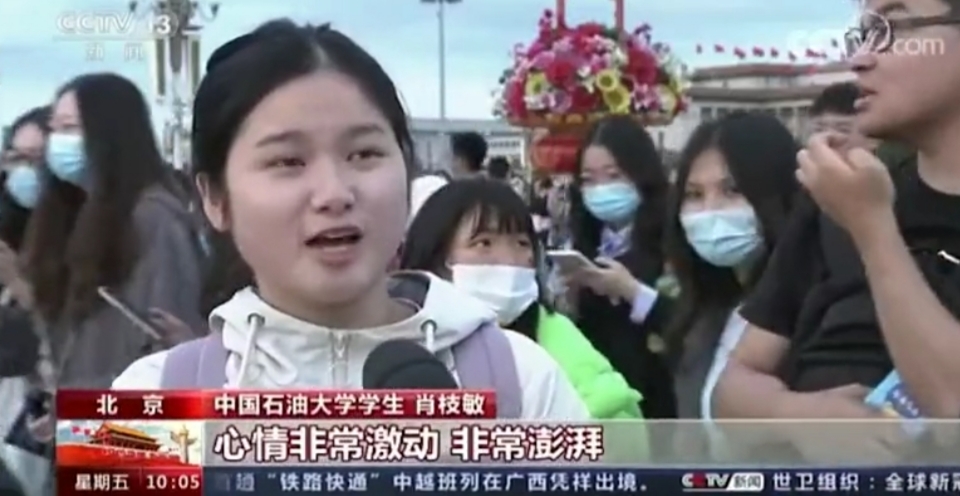 10月1日,地球物理学院学子前往天安门广场观看升旗仪式,并在人民英雄纪念碑前,举起手中的五星红旗,表达自己对英雄的敬仰:“致敬先烈!人民英雄永垂不朽!” 信息科学与工程学院面向2021级本科新生,开展主题为“追寻红色印迹,挖掘红色内涵”的线上直播活动,介绍卢沟桥、陶然亭、圆明园等北京红色景点,鼓励同学们深刻感受红色文化内涵与革命精神。自动化专业2018级本科生肖枝敏在线分享了国庆当天观看升旗仪式的感受。