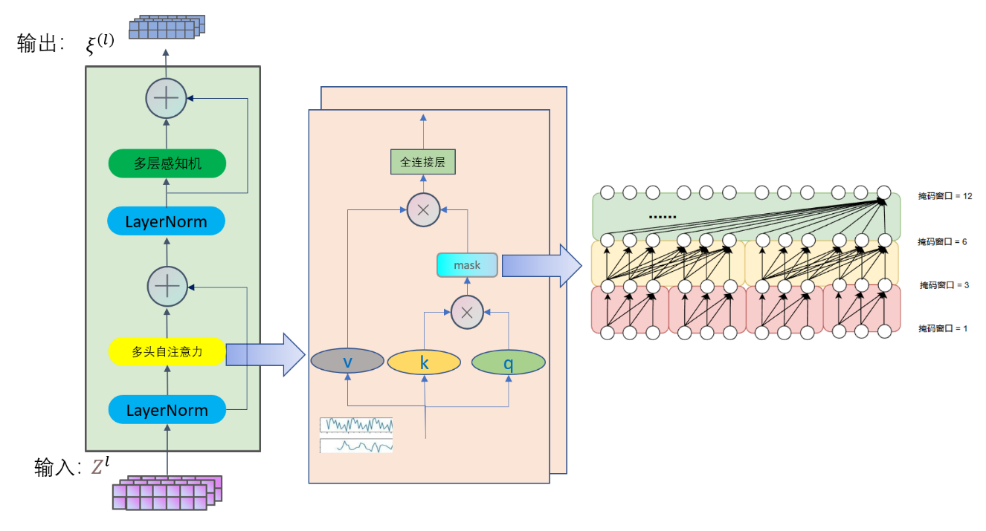 CTMSA模块是基于多头自注意力机制提出的膨胀时间卷积模型,如图2所示。它由两个残差神经网络构成,并结合多头自注意力机制和LayerNorm归一化方法。保证多步预测的同时兼顾长短步长的时间特征和有序获得时间特征。