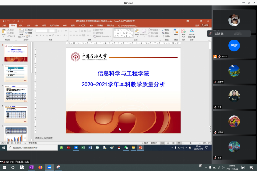 11月8日,信息科学与工程学院线上召开了2020-2021学年本科教学质量分析报告会,学院全体教师参加会议。会议由副院长吴卫江主持。