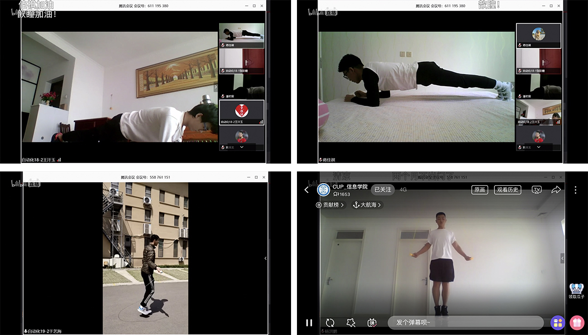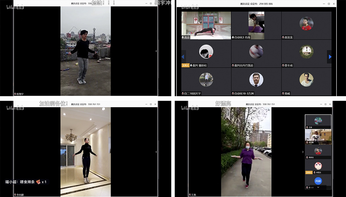 在疫情防控特殊时期,为引导学生丰富居家生活、做好健身锻炼、实施科学防疫,4月16日至18日,信息科学与工程学院组织举办了主题为“‘云’运动,‘信’战‘疫’”的线上运动会,设立仰卧举腿、深蹲、俯卧撑、仰卧起坐、开合跳、平板支撑、跳绳、俯卧撑接力、仰卧起坐接力9个竞技比赛项目以及象棋和五子棋2个趣味比赛项目。运动会分为初赛和决赛,初赛通过视频投稿的方式进行预选,决赛依托腾讯会议平台开设各项目比赛的分会场,并利用“哔哩哔哩”平台进行全程直播。
