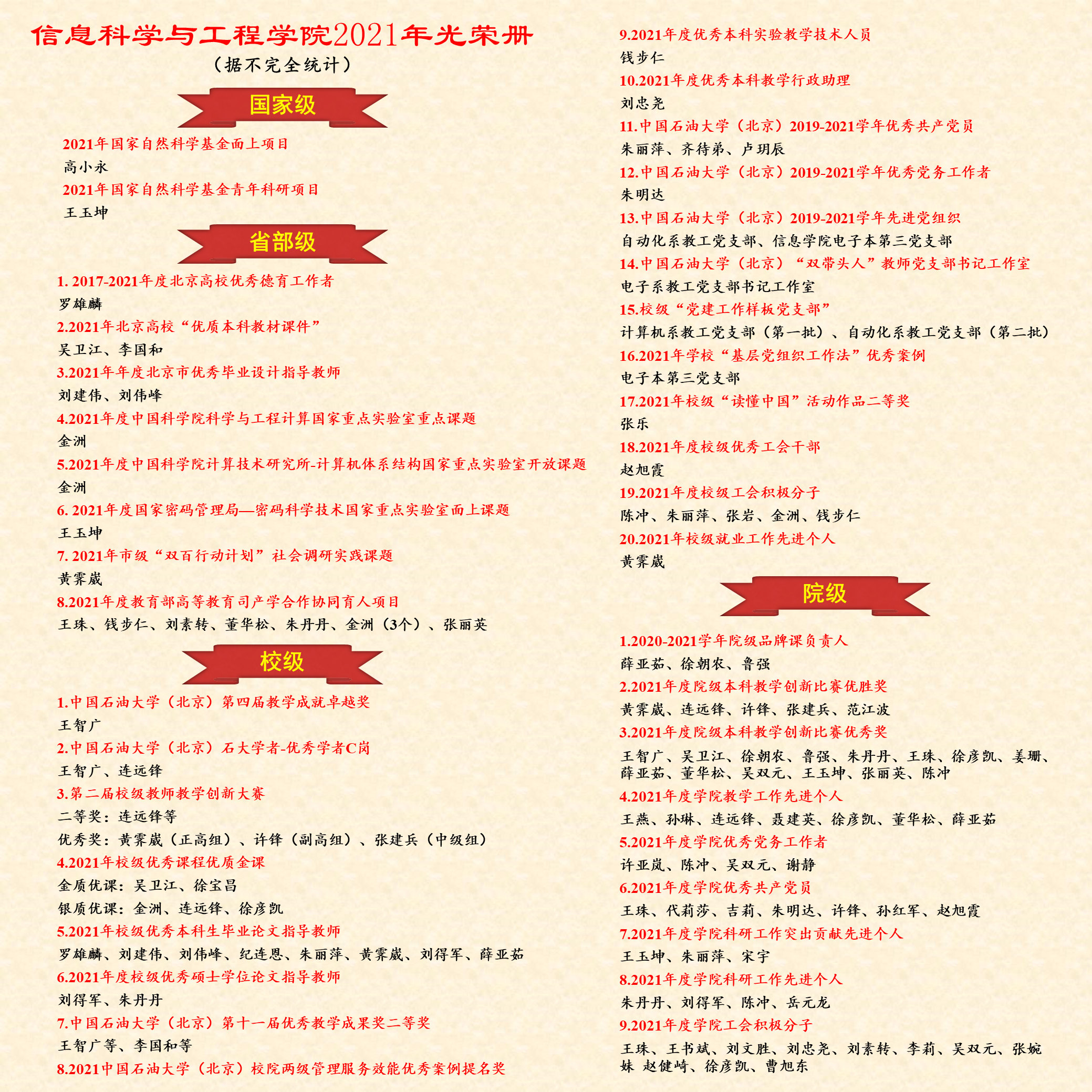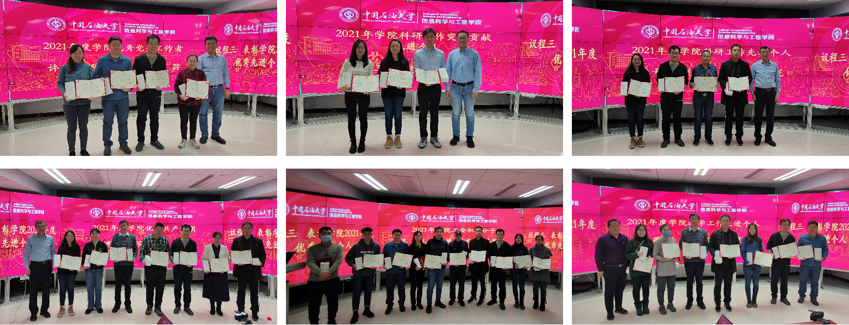 会后,学院对2021年度学院优秀先进个人进行了表彰,学院领导班子、各系(中心)主任为获奖教职工颁发了获奖证书和纪念品。