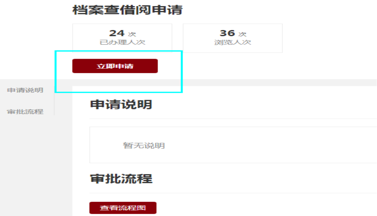 2.进入“档案查借阅申请”服务,点击“立即申请”。