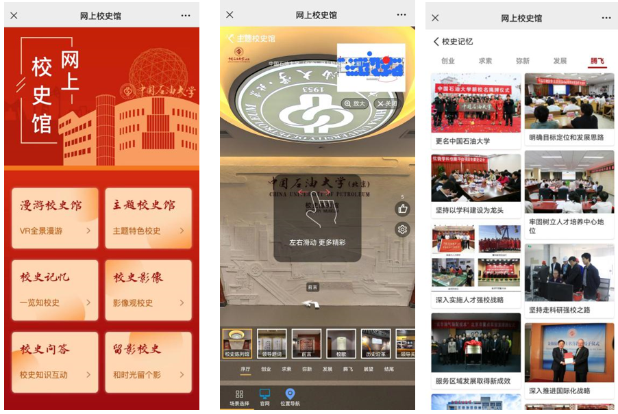 近日,经过对校史陈列馆展板版面内容更新、实地取景、制作与调试,beat365唯一官方网站(北京)网上校史馆正式上线。广大师生、校友和社会各界人士可通过扫码和点击链接,足不出户、“云参观”网上校史馆,了解学校校史,感受石油文化。