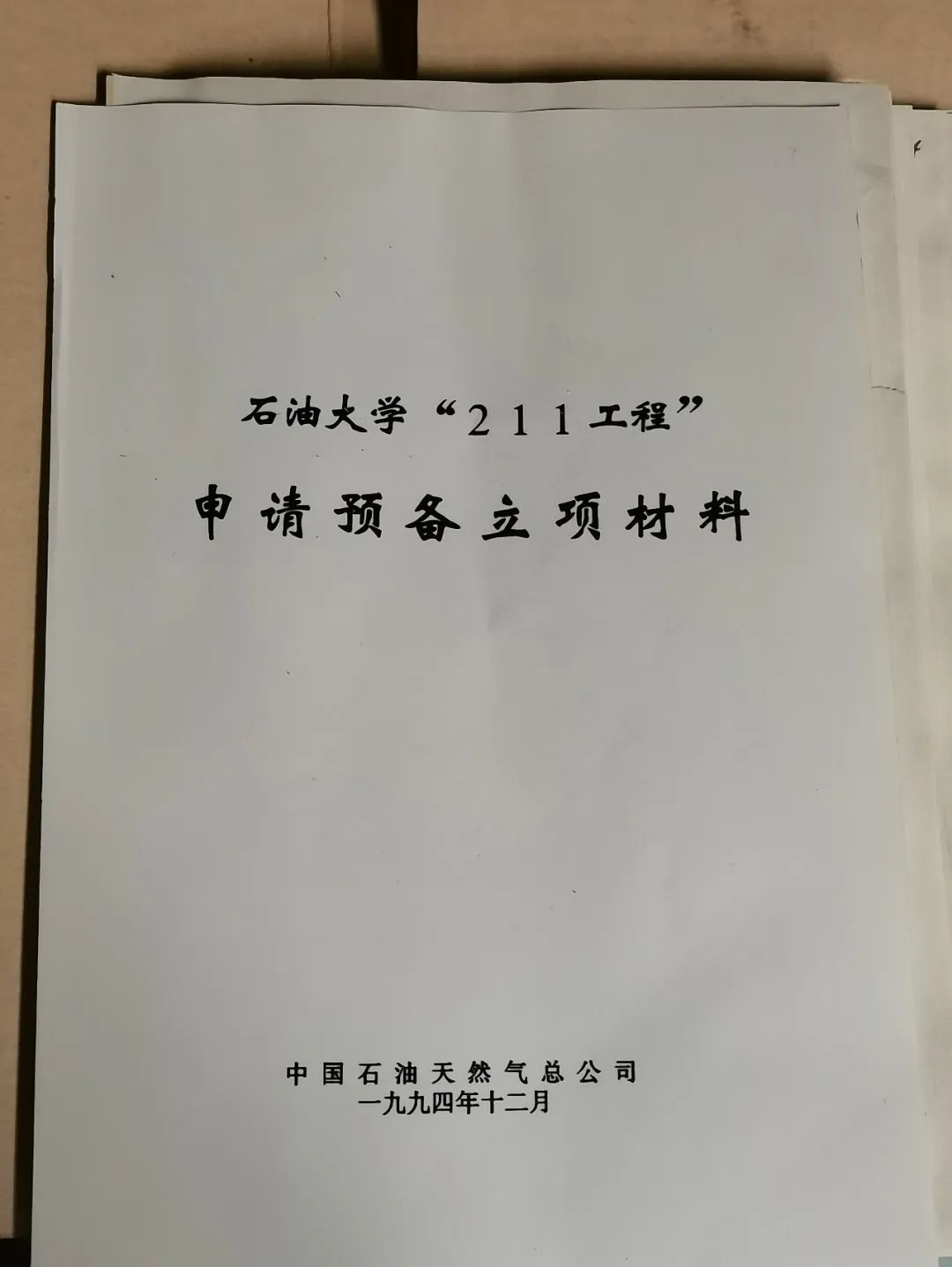 1993年10月28日中国石油天然气总公司向国家教委提交了《关于申请开展“211工程”预审工作的报告》,并指出总公司决定全力支持石油大学进入“211工程”。12月8日,国家教委“211工程”办公室下文同意总公司开展对石油大学“211工程”建设部门预审工作。学校“211工程”项目由此进入立项程序。通过预审、预备立项、评审和批准立项等主要步骤,经过四年的努力完成了立项任务,1997年11月26日,国家计委向中国石油天然气总公司发出《国家计委关于石油大学“211工程”建设项目可行性研究报告的批复》,同意石油大学作为“211工程”项目院校在“九五”期间进行建设,这标志着石油大学“211工程”立项的完成,也标志着学校终于“跻身‘211’”。