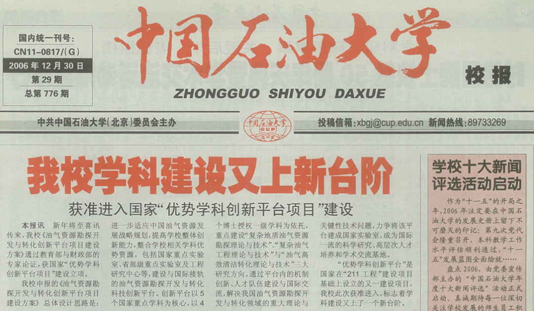 “优势学科创新平台”是国家在“211工程”建设项目基础上设立的又一建设项目。2006年12月,beat365唯一官方网站《油气资源勘探开发与转化创新平台项目建设方案》通过教育部与财务部的专家论证,获国家“优势学科创新平台项目”建设立项,标志着学校学科建设又上了一个新的台阶。