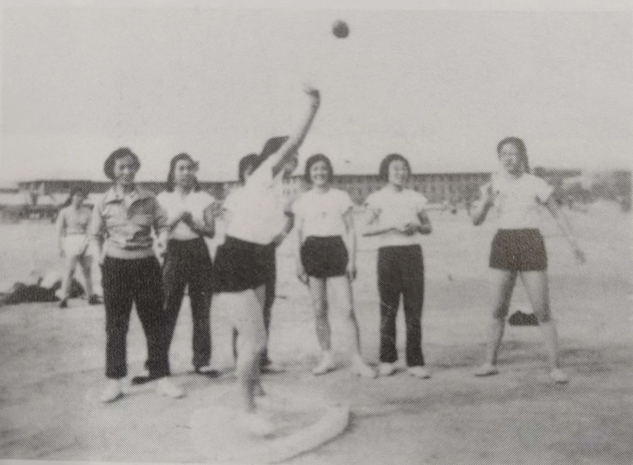 1960年,王丽先教练带领女子全能跳运动员,在体育学院进行投铅球训练