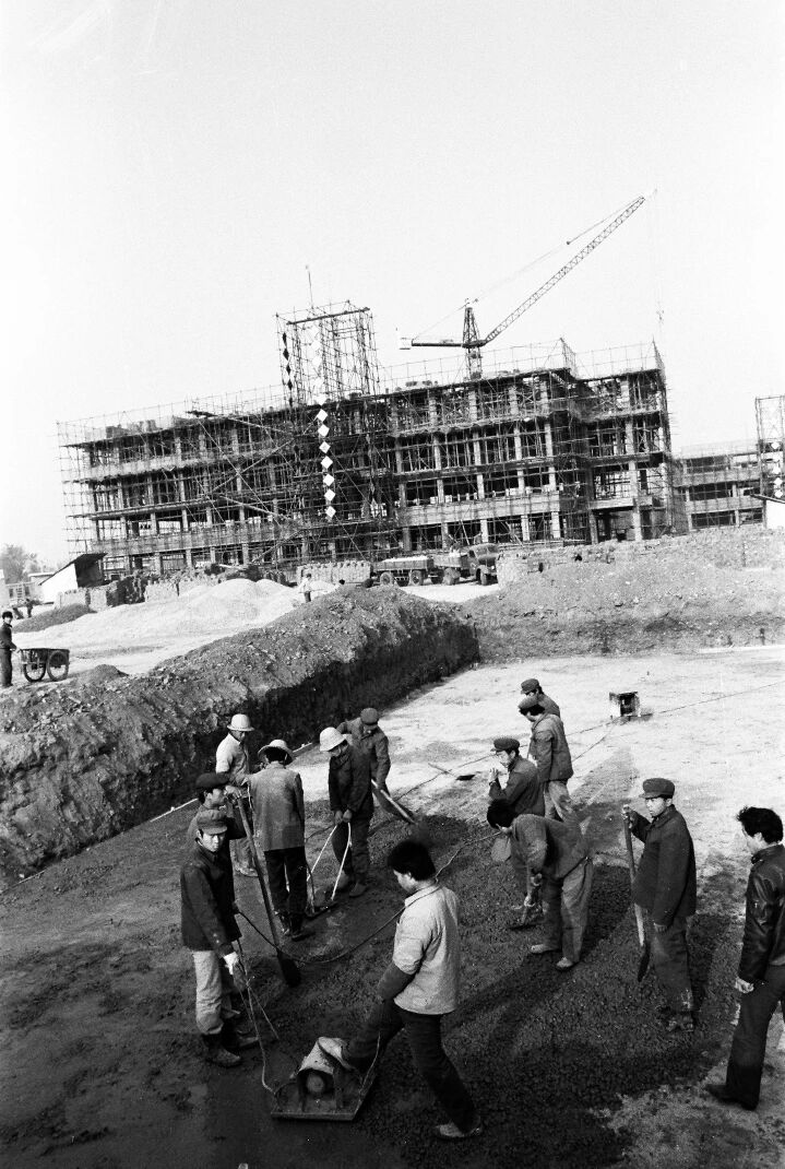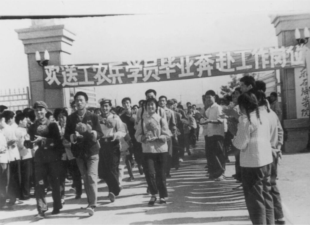 “教师学生住的是工字楼,工字楼没完工的,那个餐厅也是没完工。教室只有南北教室楼,没有完全完工,别的楼都没有。其实那个时候条件是比较艰苦,但是生活大家觉得还挺不错,新的学校盖起来了,觉得很有发展前途。我们那时候参加了学校的建设,入学以后修青年园,后来又建了红旗操场,然后东操场,这都是我们亲手参加劳动建起来的,我们觉得建校也有我们的一份责任。”(张铁麟)