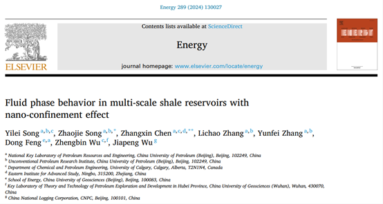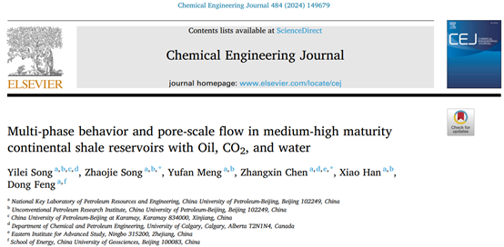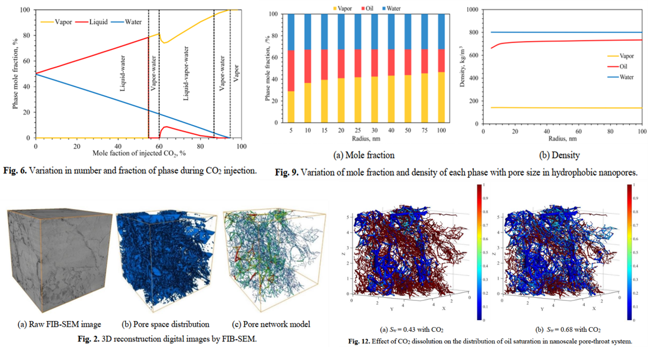 针对上述问题,我院宋兆杰教授团队联合卡尔加里大学、东方理工高等研究院、中国地质大学(北京)和中国地质大学(武汉)等单位,探究了纳米限域效应作用下页岩油注CO2的相态变化与流动机制,相关研究成果发表在国际能源领域著名期刊《Chemical Engineering Journal》和《Energy》。