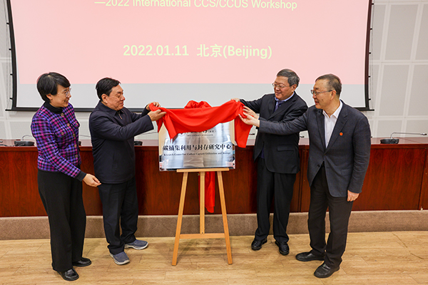 1月11日上午, 学校举行碳捕集利用与封存研究中心揭牌仪式。贾承造院士、李阳院士,中国石油勘探开发研究院副院长何东博、中国石油安全环保院副院长雍瑞生、中国石化勘探开发研究院副院长王光付、中国石化石油工程研究院副院长丁士东,中海油研究总院专家张贤松,海峡能源总裁刘自强、首席专家张福祥,学校党委书记陈峰,校长吴小林,副校长李根生、金衍,校长助理刘植昌,以及相关职能部门、国家重点实验室相关负责人及师生代表等现场参加活动。