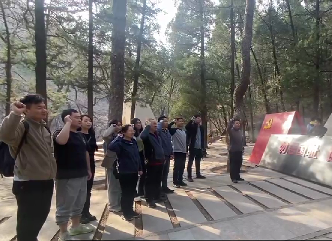穿过樱桃沟,跋涉三公里后,老师们来到一二九运动纪念地,学习了一二九运动纪念地主题展。契合清明来临,共同回顾了峥嵘岁月历史悲壮,深刻体会那一代青年的担当,缅怀革命先烈,传承爱国情怀。现场“青春力量”、“与历史对话”、“不平静的书桌”等多个雕像,也向大家无声地诉说着中华青年的伟大力量。参观结束后,老师们集体在党旗下重温了入党誓词。