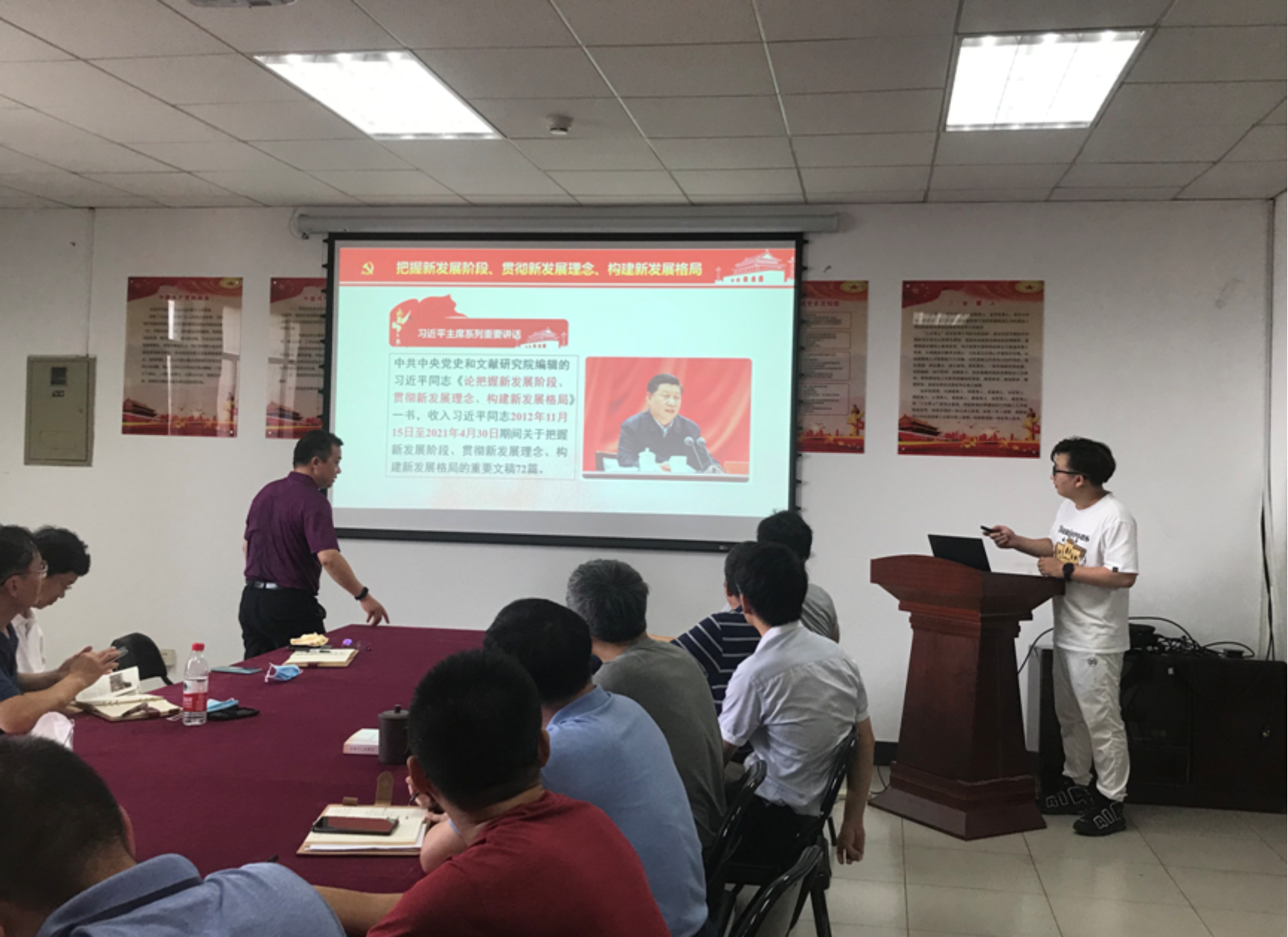 会议分为两个阶段。第一阶段,支部书记刘小平介绍了9月份学习要点,强调了学习“习近平同志关于把握新发展阶段、贯彻新发展理念、构建新发展格局的重要是论述”的必要性。学习分为三个部分,首先,钟宁宁重点领学了“习近平总书记2021年1月11日在省部级主要领导干部学习贯彻党的十九届五中全会精神专题研讨班上的讲话”,深入浅出地给出了自身的理解;其次,肖洪博士后对“习近平同志《论把握新发展阶段、贯彻新发展理念、构建新发展格局》的主要篇目”展开了重点介绍;随后,围绕“《总结党的历史经验,加强党的政治建设》”与《中共中央关于加强对“一把手”和领导班子监督的意见》、《北京市关于加强对“一把手”和领导班子监督的若干措施》”,余一欣和朱传庆分别领学了跟进学习内容。第二阶段,刘小平主持为师生宝、张剑锋、张晨3名党员过政治生日,并赠送了政治生日贺卡及生日礼物,最后,所有党员重温了入党誓词,进一步强化了政治仪式感。