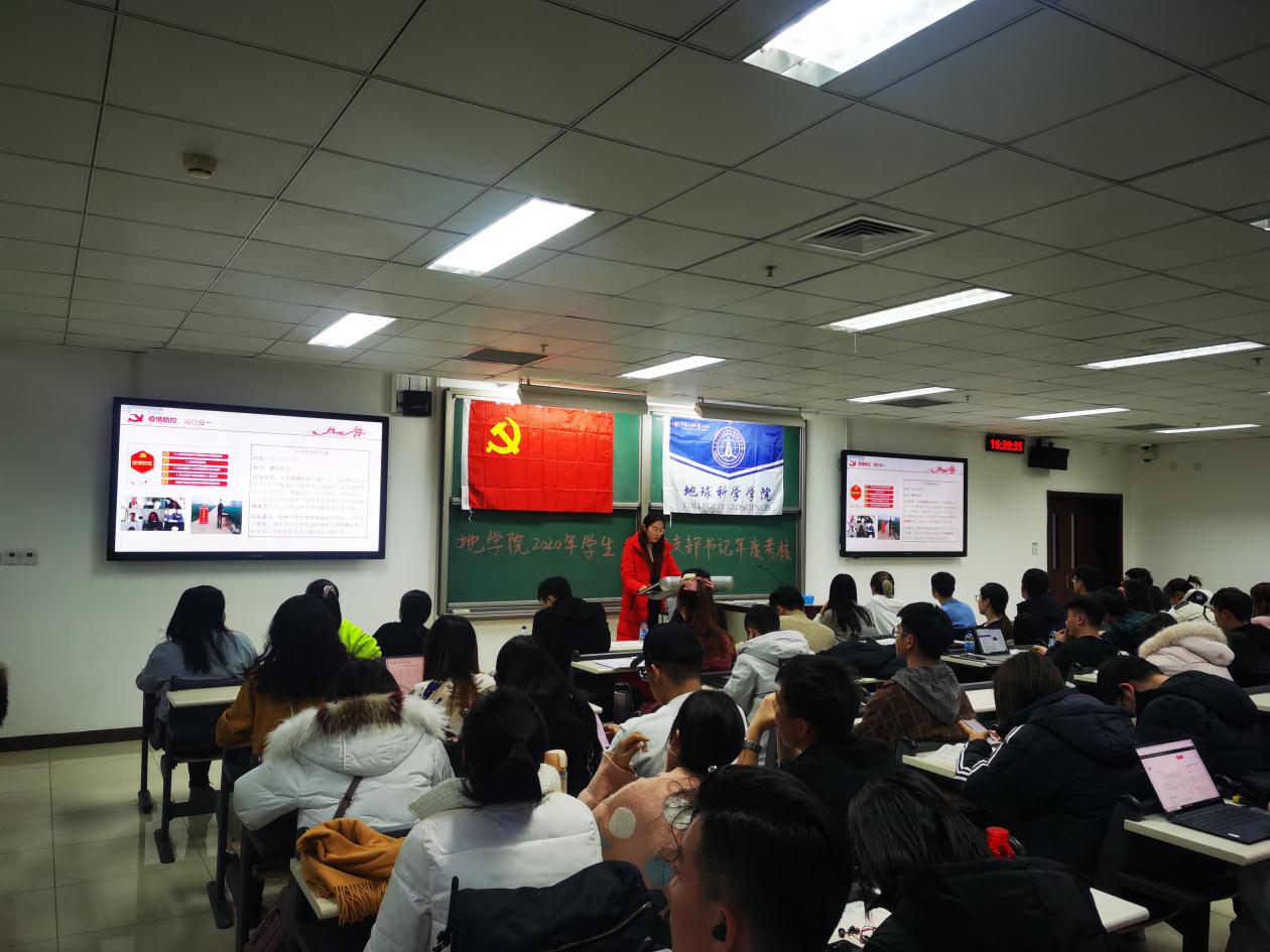 下午3点30,学生党支部考核在第四教学楼407教室展开。学院党委副书记周学智、团委书记费葳葳、全体学院辅导员及学生各党支部书记、支委参加此次考核。各学生党支部全面回顾了2020年学生党支部建设、理论学习、活动开展、学习总书记回信精神主题教育等工作,部分支部创造性地提出“‘应知应会’月评制”、“党员发展纪实分管制”等举措,充分发挥了基层党支部战斗堡垒作用,为学院其他学生支部树立先锋模范榜样。同时各党支部针对自身情况进行剖析,并制定有针对性的整改措施,对明年工作进行展望与规划。评委老师及各支部成员针对各党支部各项工作完成情况进行打分,促进了各支部之间的交流学习,实现共同进步。周学智代表学院党委对学生党支部工作进行了点评,强调了学生党支部在党建思政工作中发挥的重要作用,要求各党支部在未来的工作中要从“强理论、强纪律、强实践、强落实、强创新”五个方面加强基层党支部建设,并进一步发挥示范性与先锋模范作用,切实提升学生党支部活力建设,为学院“全国党建工作标杆院系”建设提供强有力的保障。通过现场打分与工作平时分相结合的方式,本次考核共有8个党支部获评“2020年度地球科学学院优秀党支部”荣誉称号。