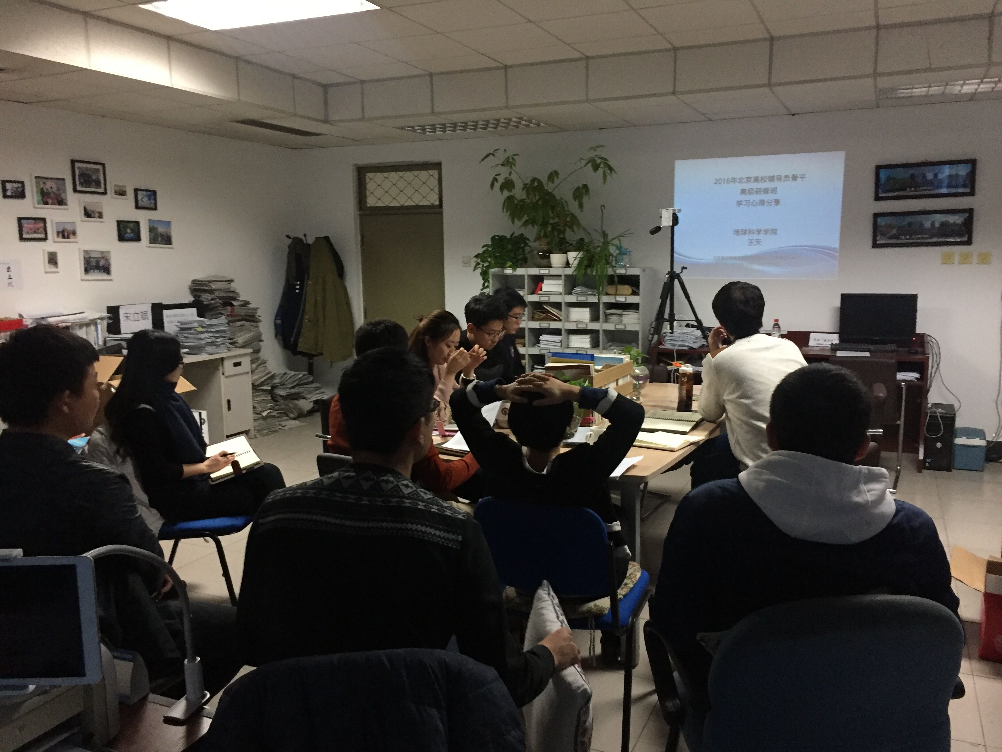 地学院专职辅导员王天结合参加北京高校辅导员骨干高级研修班的经历,从辅导员队伍建设、辅导员的自我提高、当前思政领域的热点问题三个方面对参会辅导员进行了培训和分享。在培训中王天对我校辅导员队伍建设情况和辅导员自我提高的途径进行总结,对辅导员团队工作中存在的不足进行反思并介绍了部分全国优秀辅导员代表事迹,鼓励地学院辅导员积极向优秀模范学习,为地学院学生工作建设做出更大的贡献。