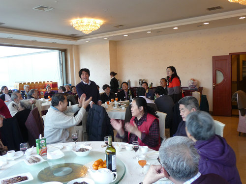 茶话会期间,院党委书记刘洛夫老师向离退休老师们介绍了学院新一任领导班子成员、各系、中心负责人以及学院工会工作人员。柳广弟院长向老教师们汇报了学院一年来的工作情况和取得的一些主要成绩,其中很大一部分成绩的取得与老教师们曾经的辛勤工作是分不开的,最后柳院长代表学院全体教职工感谢各位老教师们为学院做出的贡献,并祝各位老师晚年生活愉快,身体健康。校退休办负责人代表离退休处向学院举办的活动表示感谢,并向老教师表达了新年问候与祝福。随后,院领导班子和各系中心代表向老教师们敬酒,祝福老教师们新年快乐,身体健康。很多老教师平时难碰面,茶话会也给各位老教师提供了一个欢聚的平台,老同事老朋友们聚在一起,吃饭喝茶聊天,非常开心。