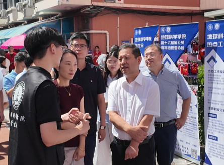 上午11时许,学校党委书记王同奇前往迎新现场了解地球科学学院本科生新生报道情况,他强调,要深入体察新生现状,服务好新生,为学生实际困境提供有力的支持。同时,重点慰问了负责迎新的社团工作人员,并与他们亲切交流,为师生们带来了温暖与鼓舞。