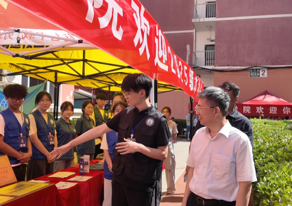 随后校长一行来到学院迎新棚了解学院新生报到情况,学院本科新生辅导员李普一向校长详细介绍了迎新情况、先导教育及其他特色工作。在今年的迎新过程中,学院以“知-信-行”为主线构建全过程育人体系:知校环节以“知新生、知家庭”为抓手;爱校环节围绕“信学校、信学院、信专业”;行校环节聚焦知行合一。