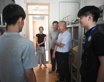 校长金衍、副校长黄磊走访地学院新生宿舍,关心新生住宿环境及适应情况,认真查看了宿舍的住宿条件、卫生环境和安全设施。金校长体贴入微的问候,让新生找到了“家”的归属感。