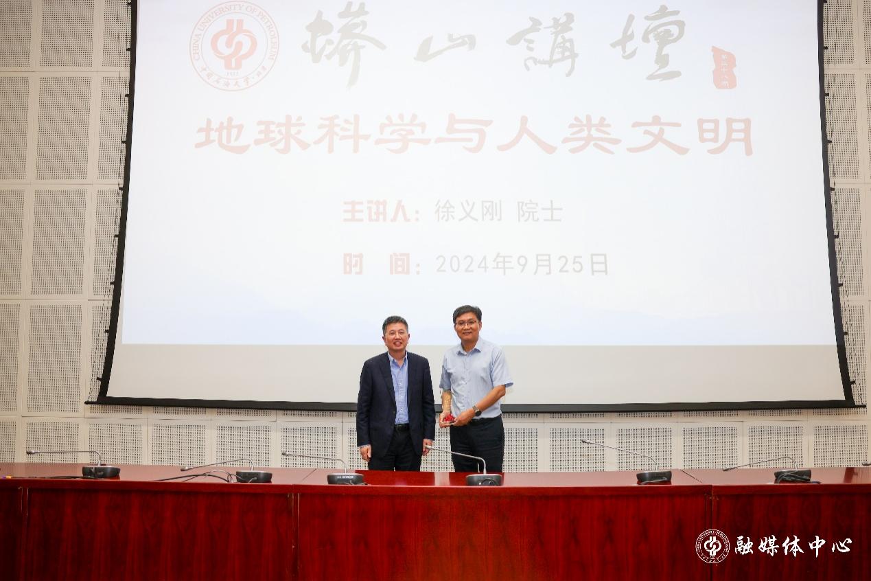 金衍为徐义刚院士颁发了“蟒山讲坛”纪念牌。