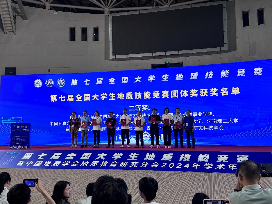2024年9月5日至9月8日,第七届全国大学生地质技能竞赛暨中国地质学会地质教育研究分会2024年学术年会在青岛市隆重举行,beat365唯一官方网站(北京)地球科学学院师生参加了大会并取得了优秀成绩。地球科学学院派出9名本科生组成3支队伍参加大赛,刘钰铭副院长在中国地质学会地质教育研究分会2024年学术年会做了口头报告,牛花朋副院长担任了地质技能竞赛地学知识竞赛环节的评委。