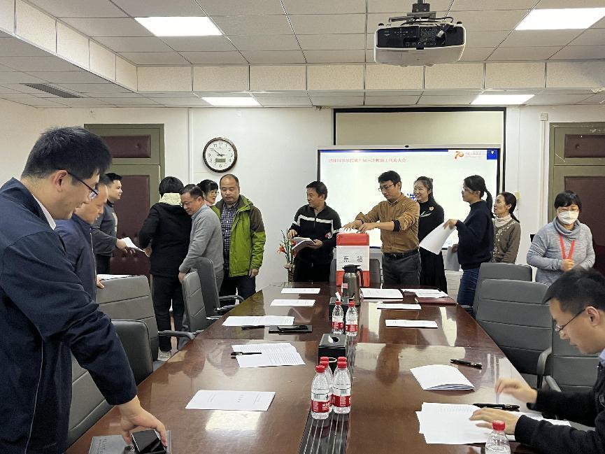 随后,由工会主席牛花朋主持,选举学院出席学校第七届教职工代表大会、第七届工会会员代表大会代表。根据学校相关文件要求,严格按照公开透明的流程,进行投票、计票、监票,共选举出11名出席学校第七届教职工代表大会代表、5名出席学校第七届工会会员代表大会代表。