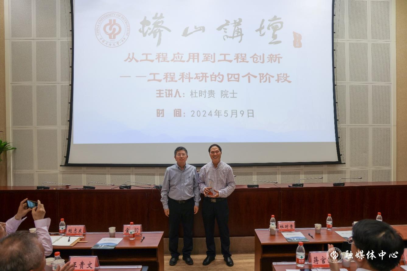 金衍为杜时贵院士颁发了“蟒山讲坛”纪念牌。