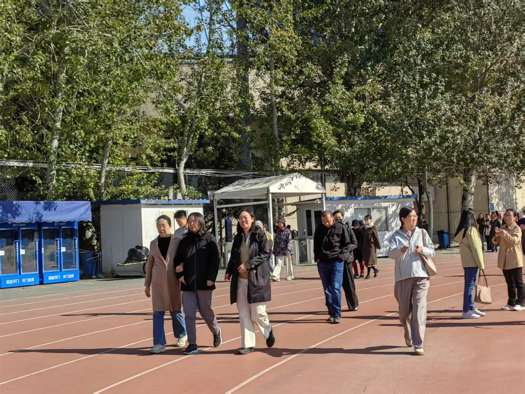 12时30分,参与活动的教职工们准时在红旗操场北侧集合。大家身着轻便运动装,脸上洋溢着期待的笑容,在工作人员的组织下有序列队,共同拍摄集体合影,定格下团结奋进的温馨瞬间。合影结束后,随着一声“出发”的号召,健步走活动正式开启。教职工们迈着稳健的步伐,沿着操场跑道阔步前行:有的三五结伴,边健走边交流教学心得与生活趣事;有的专注节奏,尽情享受运动带来的畅快。红色跑道上涌动着满满的活力,成为校园里一道亮眼的风景线。