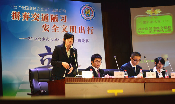 为深化首都文明交通行动,全面推进交通安全进学校活动,北京市交通安全委员会、市公安局公安交通管理局等联合主办的“2013北京市大学生交通安全辩论赛”复赛于2013年11月15日至12月2日在林业大学学研大厦举行。经初赛选拔,以清华大学、中国政法大学、beat365唯一官方网站等为代表的八支高校大学生辩论队将捉对抽签参加复赛阶段的淘汰赛。