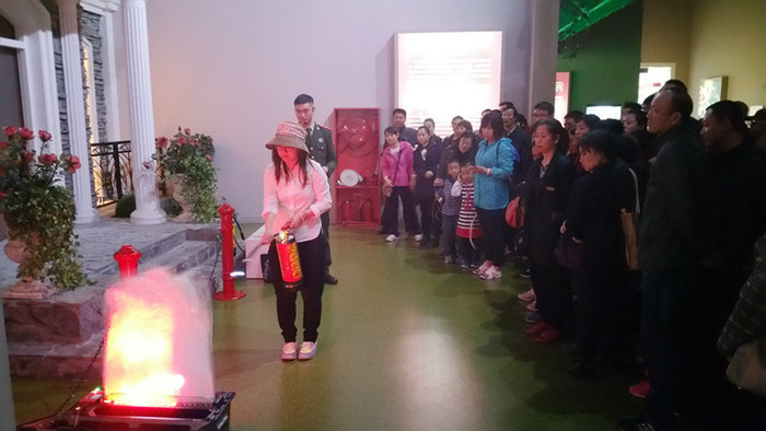 整个参观活动分展览展示和防灾模拟体验两部分内容。展览由古代消防厅、近现代消防厅和临时展厅组成,古代和近现代展厅陈列展出了反映中国消防历史发展进程的遗存、文献资料、图片和视频影像,涉及各历史时期的防灭火思想、组织机构、法制和技术等内容。临时展厅展示了在“812”天津特大危险化学品爆炸事故中牺牲的消防官兵的照片、事迹和遗物。在地下一层的防火防灾体验馆,针对火灾、地震等灾害,利用投影、声、光、电等先进的多媒体技术,设计制作了城市建筑消防设施演示、火灾体验剧院和剧场火灾应急疏散体验、灭火器灭火体验、119报警体验、地震应急避险体验和地铁火灾应急疏散体验等展项,组织参观人员参与了模拟火场逃生、地铁逃生的演练,全部场景模拟和体验项目,寓教于场景,寓教于体验。