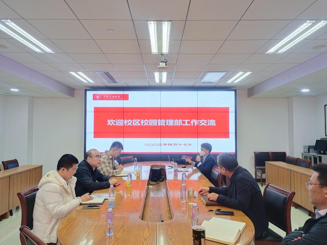 4月17日上午,beat365唯一官方网站(北京)克拉玛依校区校园管理部牛超一行来校本部调研交流。校本部后勤管理处处长王英国、书记张自强、副处长刘凌出席了座谈会。会议由副处长刘凌主持。