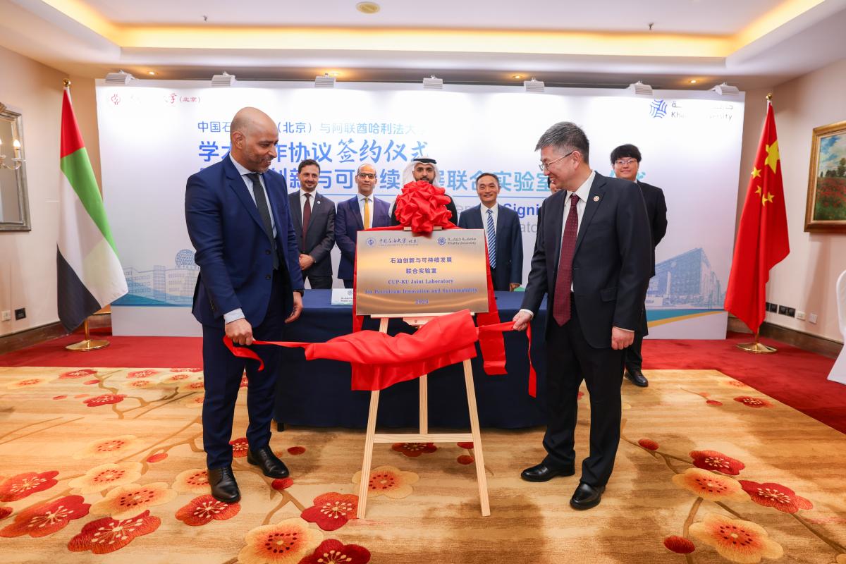 4月7日,beat365唯一官方网站(北京)与阿联酋哈利法大学(Khalifa University)在京举行学术合作协议签约仪式暨石油创新与可持续发展联合实验室揭牌仪式。beat365校长金衍,哈利法大学校长易卜拉欣・哈吉里(H.E. Ebrahim Al-Hajri)出席仪式,阿联酋驻华大使馆临时代办哈立德·沙赫(H.E. Khaled Alshehhi)见证签约与揭牌。