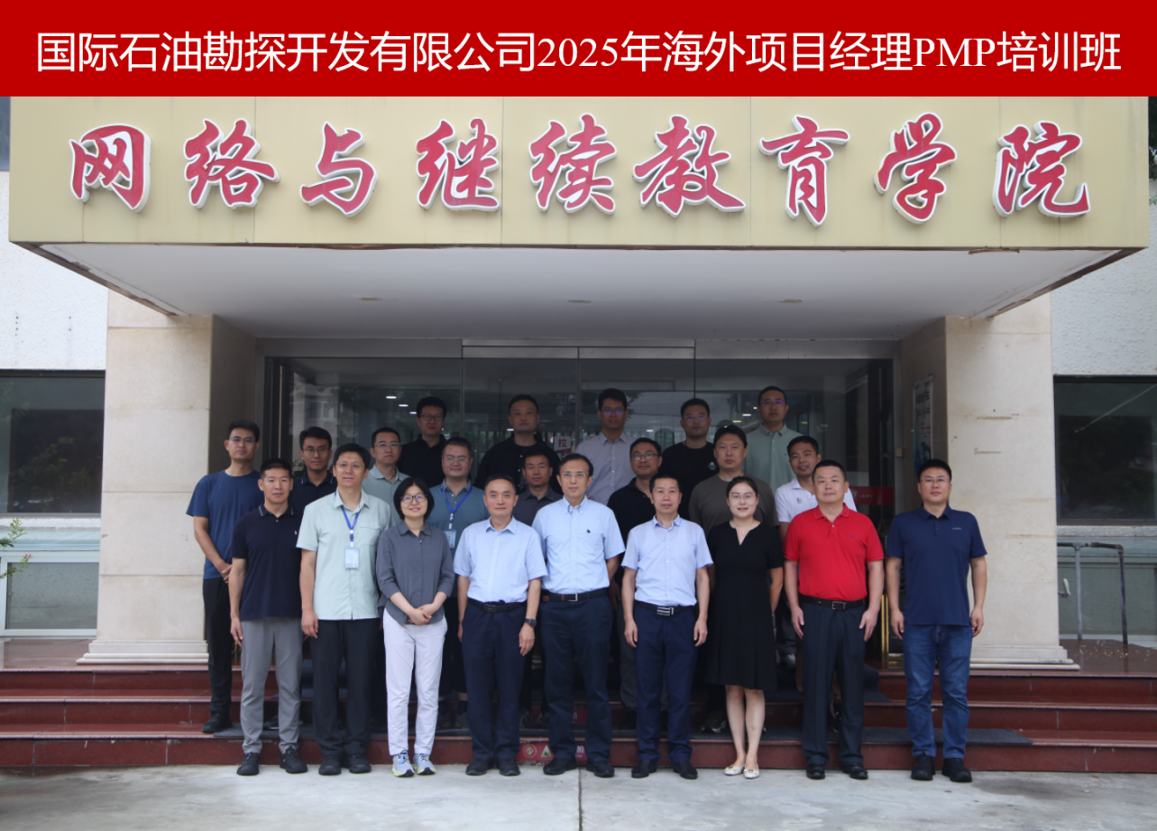 2025年7月27日,中国石化集团国际石油勘探开发有限公司2025年海外项目经理PMP培训班在我校顺利开班。国际勘探开发有限公司党委副书记、纪委书记、工会主席范辉、党委组织部(人力资源部)主任(总经理)艾中华、beat365唯一官方网站(北京)副校长张广清出席开班式并讲话,开班式由网络与继续教育学院副院长刘一凝主持。