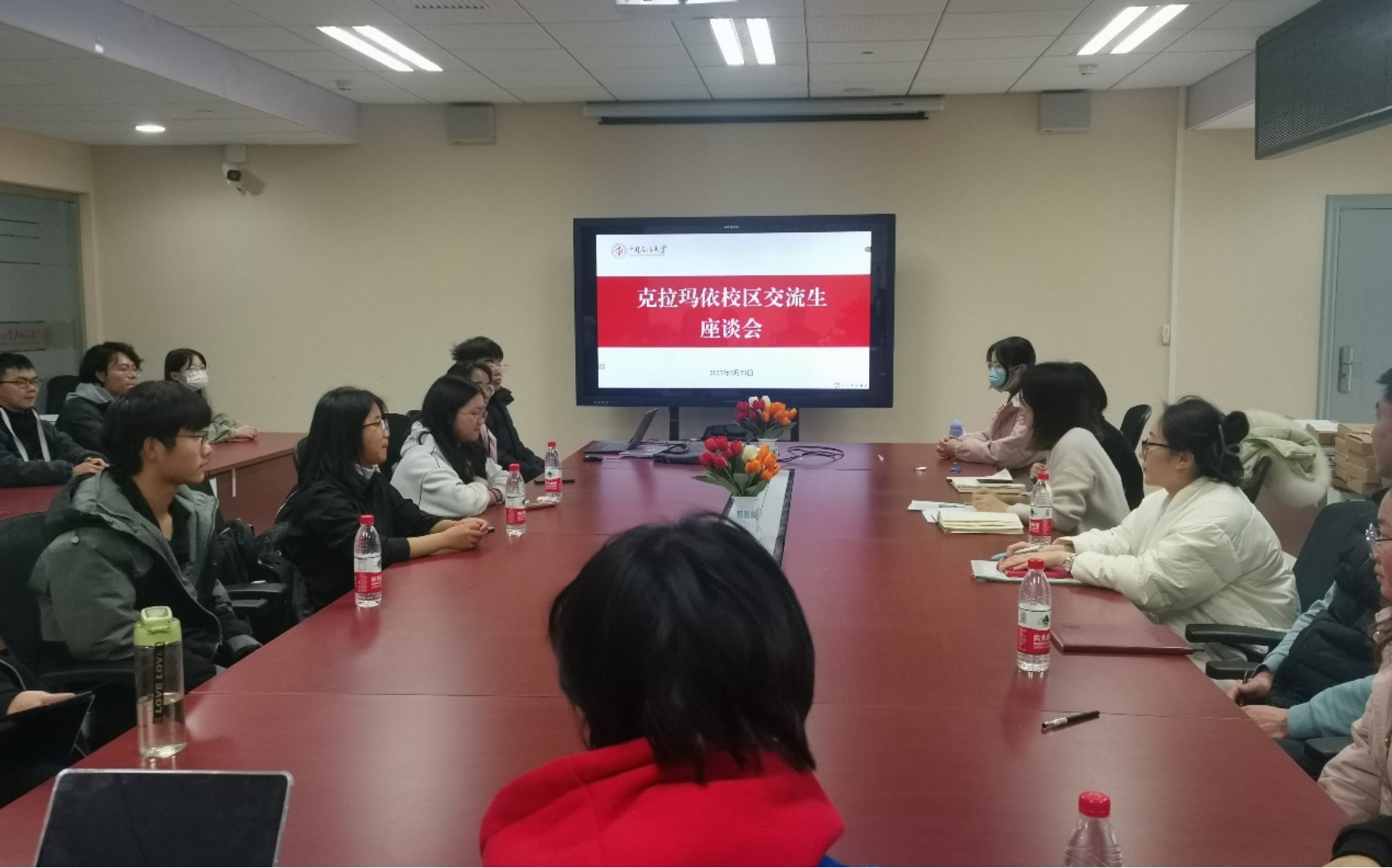 2月23日,教务处召开了2023年春季学期第一期克拉玛依校区交流生座谈会,校本部和克拉玛依校区教务部工作人员、部分学院辅导员以及克拉玛依校区交流生参加了本次座谈会。