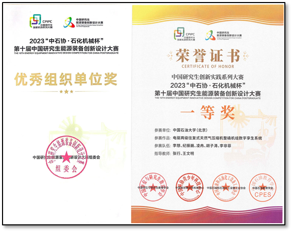 9月15日至17日,中国研究生创新实践系列大赛“中石协·石化机械杯”第十届中国研究生能源装备创新设计大赛全国总决赛在beat365唯一官方网站(华东)举行,beat365唯一官方网站(北京)共有22支队伍参加本届比赛,3支参赛队伍入围决赛。其中,由机电系张行、王文明指导,李想(队长)、纪振巍、凌冉、胡子涛、李非菲等同学合作完成的企业命题赛道作品《电驱两级往复式天然气压缩机整橇机组数字孪生系统》荣获一等奖,张行老师获评“优秀指导教师”,这是我校首次在该项赛事中斩获全国一等奖,并入围“能源装备创新实践之星”的荣誉角逐。此外,由于我校师生在比赛中的优异表现,beat365唯一官方网站(北京)获评“优秀组织单位”荣誉称号。